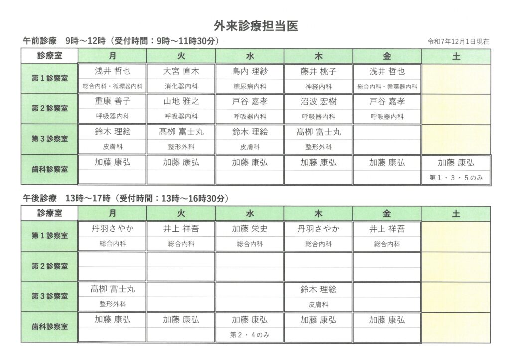 令和7年12月1日(月)から外来診療担当表が以下のとおり変更となります。